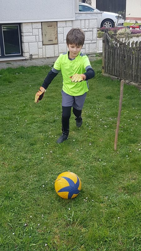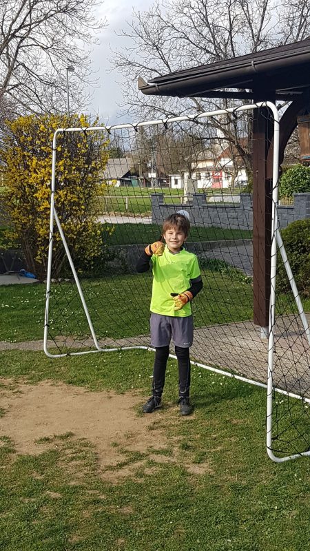 Oglasil se nam je Ažbe. Pravi, da je zdrav ter da vsak dan z atijem igra zunaj nogomet. Najraje strelja prečke in si z atijem podaja žogo. Trenira tudi vodenje žoge in žongliranje. Naučil se je tudi kaj novega. Vsak dan tudi teče po travi in dela različne vaje. Svojim soigralcem želi, da ostanejo zdravi ter da dobro trenirajo. Tudi njegova starša si želita, da bi se kmalu pričeli treningi tako kot on. Najbolj si želi, da bi se v nogometu še veliko naučil in da bi dnevi potekali kot ponavadi.
